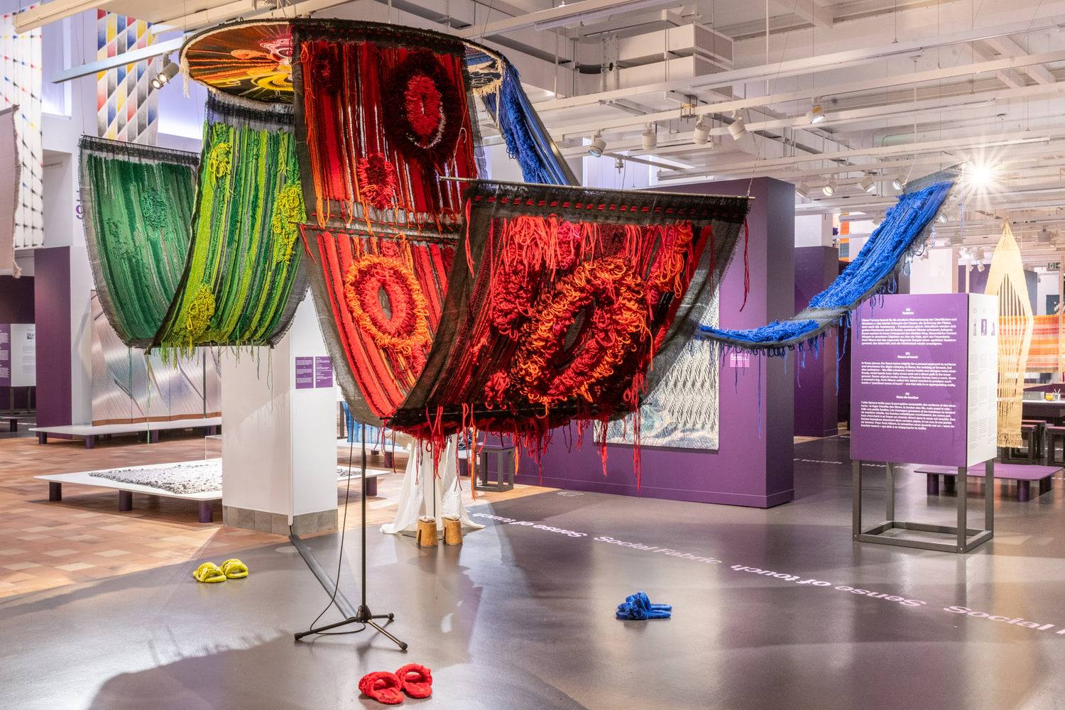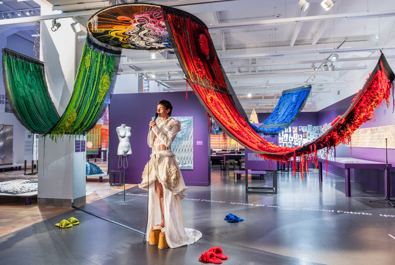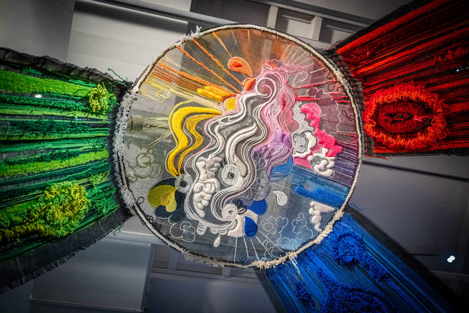 Getuftete Schafwolle, Wolle aus dem Bestand von Lilly Keller, Glitzer, Tusche, Acrylfarbe, Nachtleuchtfarbe auf Leinwand, Latex, Mikrophon, Soundpiece von Belia Winnewisser